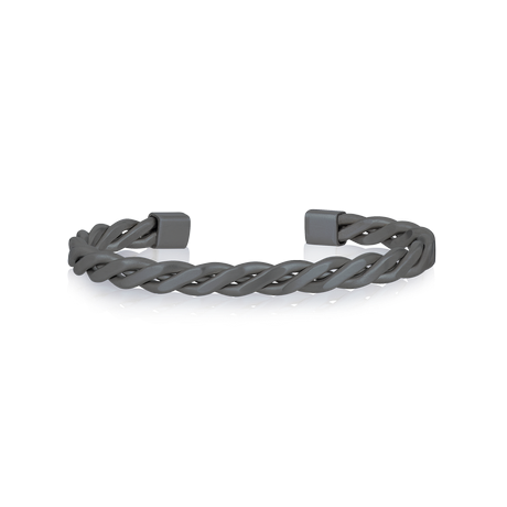 Bracciale maschile rigido in acciaio con trattamento IP gun intrecciato: un sapiente gioco di stile per un accessorio trendy e contemporaneo. Larghezza 6.8cm.