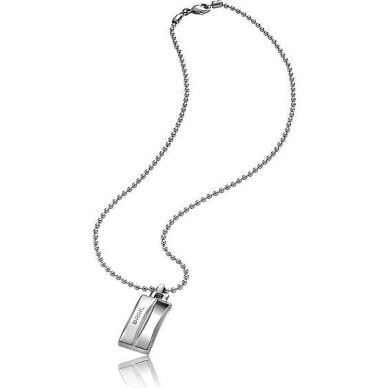 Pendente in acciaio bilux. Catena ball chain con chiusura a moschettone. Lunghezza regolabile da cm 48,00 a cm 50,50.