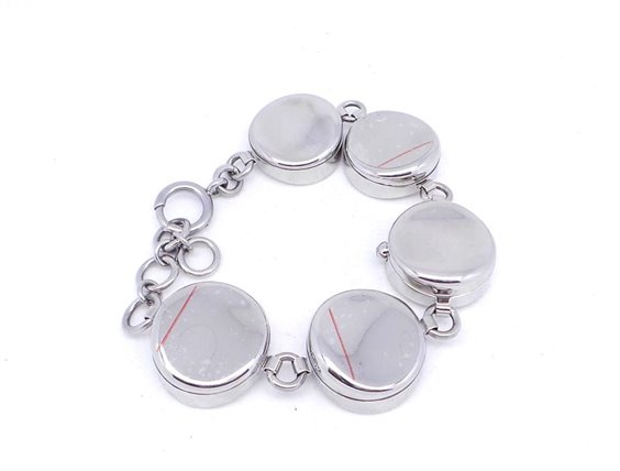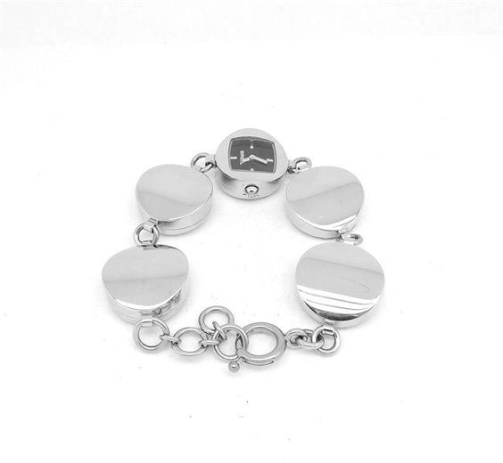 Orologio Breil double face da una parte orologio dall'altra bracciale. Cassa in acciaio mm 19, sfondo nero corona e fondello a pressione lunghezza max 21.5 cm.