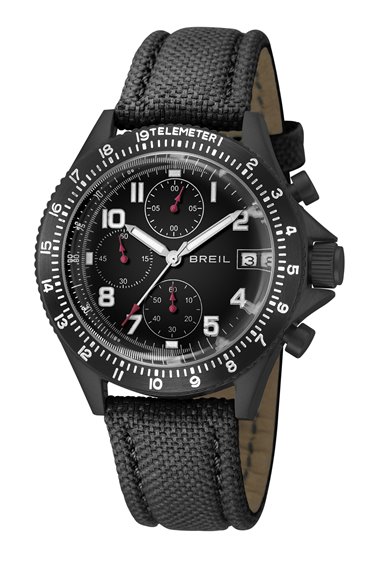 Orologio Breil Maverik cronografo uomo con quadrante nero e lancette rosse, cassa in acciaio nero e cinturino in pelle nera ispirato agli orologi vintage legati al mondo dell'aviazione
