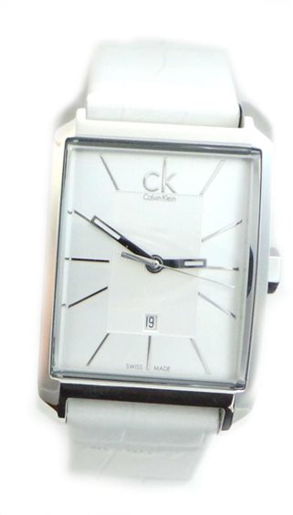 Orologio Calvin Klein della linea Window, caratterizzato da un design innovativo e dinamico. Cassa in acciaio anallergico, vetro minerale bombato e cinturino stampa cocco bianco. Movimento SWISS MADE.