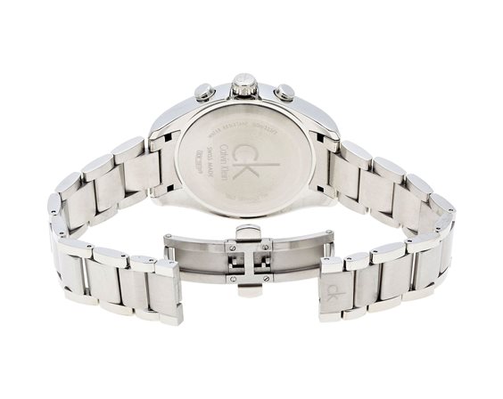 orologio in acciaio, diametro 38 mm, vetro minerale, movimento quartz chrono, bracciale acciaio con chiusura deployante a pulsanti, water resistant 10 atm