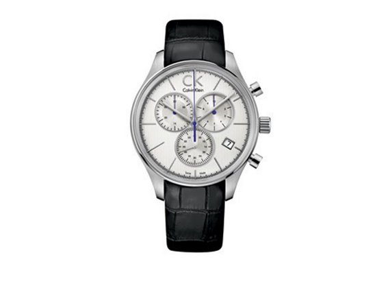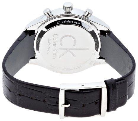 Orologio Calvin Klein modello Gravitation con movimento al quarzo , cronografo , cassa in acciaio mm 42 , quadrante argentee , vetro minerale , fondo serrato a pressione WR 3 atm , peso gr 68 , cinturino in pelle nero con fibbia in acciaio . 2 anni di garanzia internazionale .