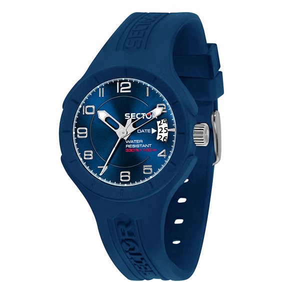 Orologio Solo Tempo Da Uomo Di Sector Della Collezione Speed. Modello Con Cassa In Nylon Della Dimensione Di 33 Quadrante Di Colore Blue E Vetro Minerale. Il Cinturino È In Silicone Di Colore Blu Con Fibbia Ardiglione. Orologio Con Mov. Vj32B11 3H Date 3H E Resistenza All'Acqua Di 10 Atm.