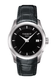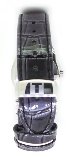 Orologio solo tempo con data, cassa in acciaio, cinturino in pelle grigio scuro aderente la cassa con chiusura a farfalla e pulsanti, movimento svizzero al quarzo, vetro zaffiro, impermeabile 10 ATM, quadrante nero, diametro cassa 32mm. Completamente Swiss Made